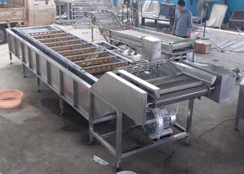 蔬菜清洗機械設備也成為氣泡式蔬菜清洗機,主要采用氣泡清洗加噴淋的方式,可以有效分離被清洗蔬菜表面附著物,模擬人工清洗有效避免了人工清洗中的碰、磕、劃傷等現(xiàn)象,實現(xiàn)了蔬菜清洗加工流水線作業(yè)。
